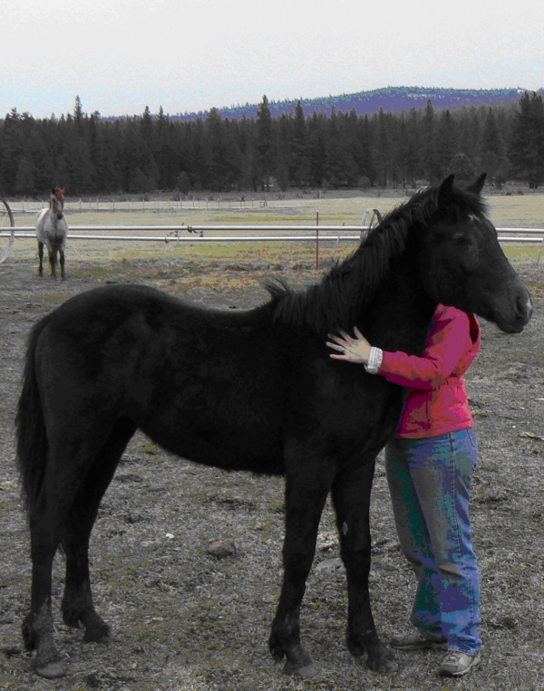 Seanachan has been thoroughly handled since birth. He is used to the farrier, children, dogs, Sand Hill Cranes, geese, goats, cattle, cats, receiving vaccinations and wormers, and is experienced in loading and traveling in trailers. He has an exceptionally calm demeanor; after his first trailering experience, he emerged from the trailer with his neck tense, his legs slightly splayed, and his eyes the size of dinner plates. After talking with him for about a minute and rubbing his neck, he completely relaxed and started sniffing and walking around curiously. That’s the most upset we’ve ever seen Sean!
